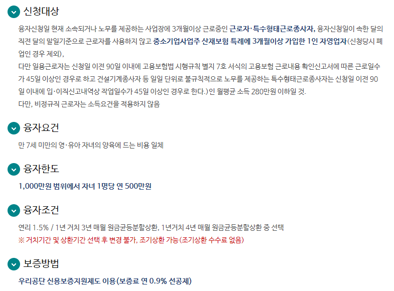 1. 대출 조건: 이 대출은 7세 미만의 자녀를 둔 근로자를 위한 대출입니다.