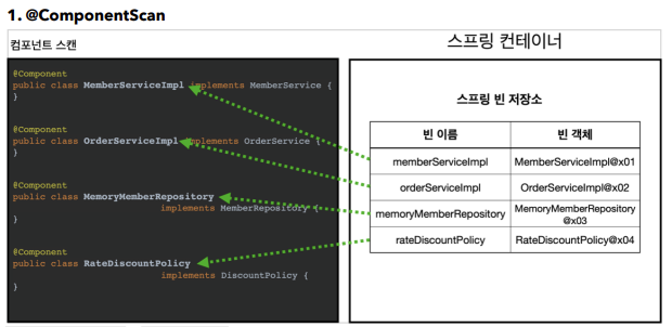 - @ComponentScan은 @Component 첨부 클래스를 스캔하여 자동으로 Spring Bean으로 등록합니다.