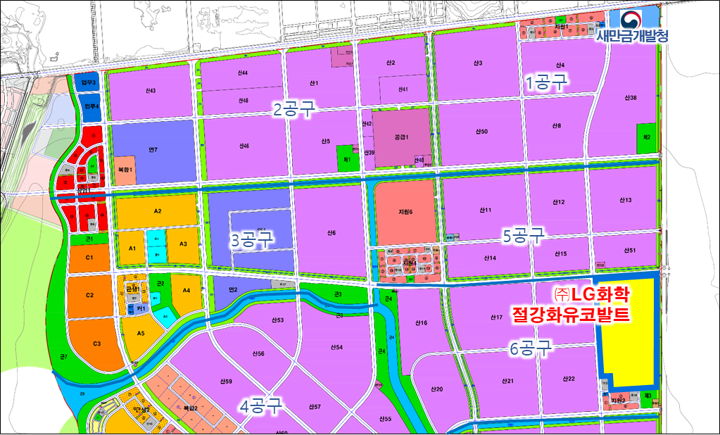 새만금개발청과 전라북도, 군산시, 한국농어촌공사가 4월 19일 ㈜LG화학 Zhejiang Huayu Cobalt새만금 국가산업단지에는 1조 2,000억 원 규모의 ‘이차전지 소재 제조시설’이 들어선다.
