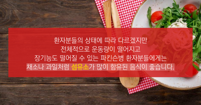 파킨슨병의 경우 발병하면 근력이 급격히 감소해 보행에 어려움이 생기는 문제 외에도 음식을 섭취하고 손에 물건을 잡는 행동조차 어려울 수 있으므로 평소 적절한 운동을 꾸준히 실천하는 것이 바람직합니다.이때 파킨슨병에 좋은 음식까지 섭취하면 2배의 효과를 기대할 수 있습니다.이미 진단을 받은 경우에도 올바른 관리로 진행 속도를 늦출 수 있으니 습관을 기르고 노후에도 튼튼한 건강을 유지하시기 바랍니다.